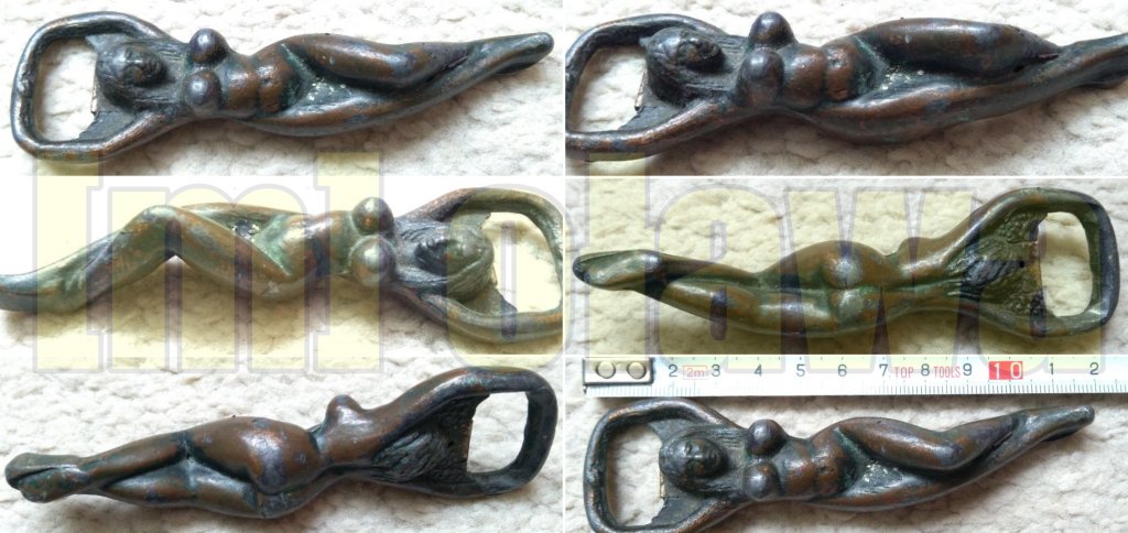 Używany otwieracz do kapsli, itp. Uchwyt otwieracza to naga dziewczyna/kobieta z dużym biustem. Prawdopodobnie (dokładnie nie wiem) wykonany jest z mosiądzu. Cena do negocjacji. Zapraszam.