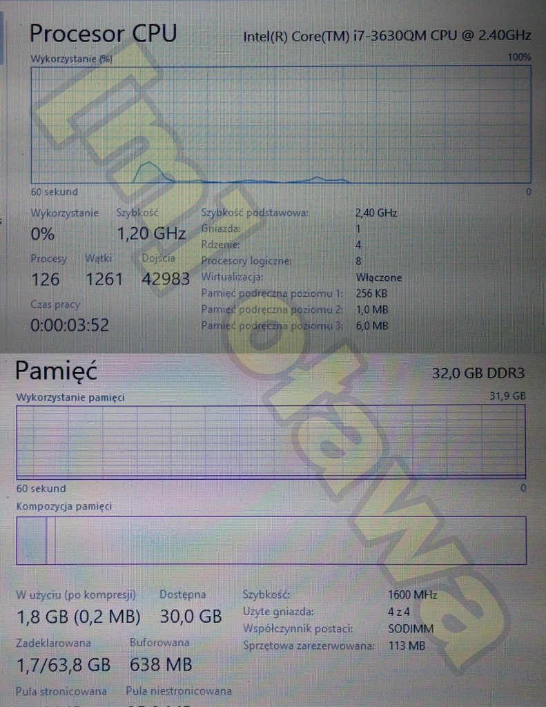 Sprzedam używanego, w pełni sprawnego, zadbanego laptopa - od nowości w moim posiadaniu. Laptop w ciągłym użytkowaniu. Parametry laptopa to: procesor Intel i7-3630QM 2,40 GHz (w trybie Turbo do 3,40 GHz), 32GB pamięci RAM, 2 dyski twarde (jeden - SSHD o pojemności 500GB [Seagate Laptop Thin SSHD; 5400 RPM; SATA] | drugi - HDD o pojemności 750GB [TOSHIBA; 5400 RPM; SATA]), ekran 17 cali o rozdzielczości FullHD [matowa powłoka], podświetlana klawiatura, kamera, mikrofon, karta WiFi Intel AC 8265 [w tego typu laptopach takie karty nie występowały, ale o tym dalej :) ], Bluetooth, głośniki stereo HARMAN/KARDON [bardzo przyjemnie i głośno grają; w laptopach to rzadkość], nagrywarka DVD, czytnik kart SD, 4 x USB 3, HDMI, LAN 100Mbit, wyjście VGA, wyjście na słuchawki, wyjście na mikrofon, oryginalna bateria w bardzo dobrej kondycji (tylko 12,5% zużycia), oryginalny zasilacz, zainstalowany licencjonowany Windows 11 Home po polsku. Cichy i wydajny. Laptop świetnie nadaje się do codziennego użytku i doskonale radzi sobie z grami, obróbką grafiki, montażem wideo, montażem muzyki, renderowaniem, wirtualizacją, itp. wymagającym zadaniom. W rzeczywistości laptop prezentuje się bardzo dobrze. Cena do lekkiej negocjacji. Serdecznie Zapraszam.